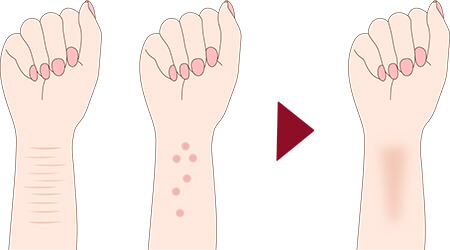 リストカットの傷が細い方やテカリのある方、傷跡が広範囲の方に適した治療法です。