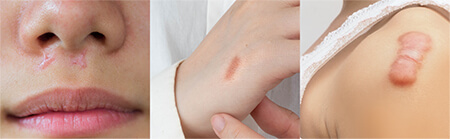 ③軽度の皮膚損傷(BCG注射・虫刺され等)でも起こる場合がある[真性ケロイド]と言い、真性ケロイドは元の傷の大きさにより拡大し、腫瘤状に盛り上がる場合があります。